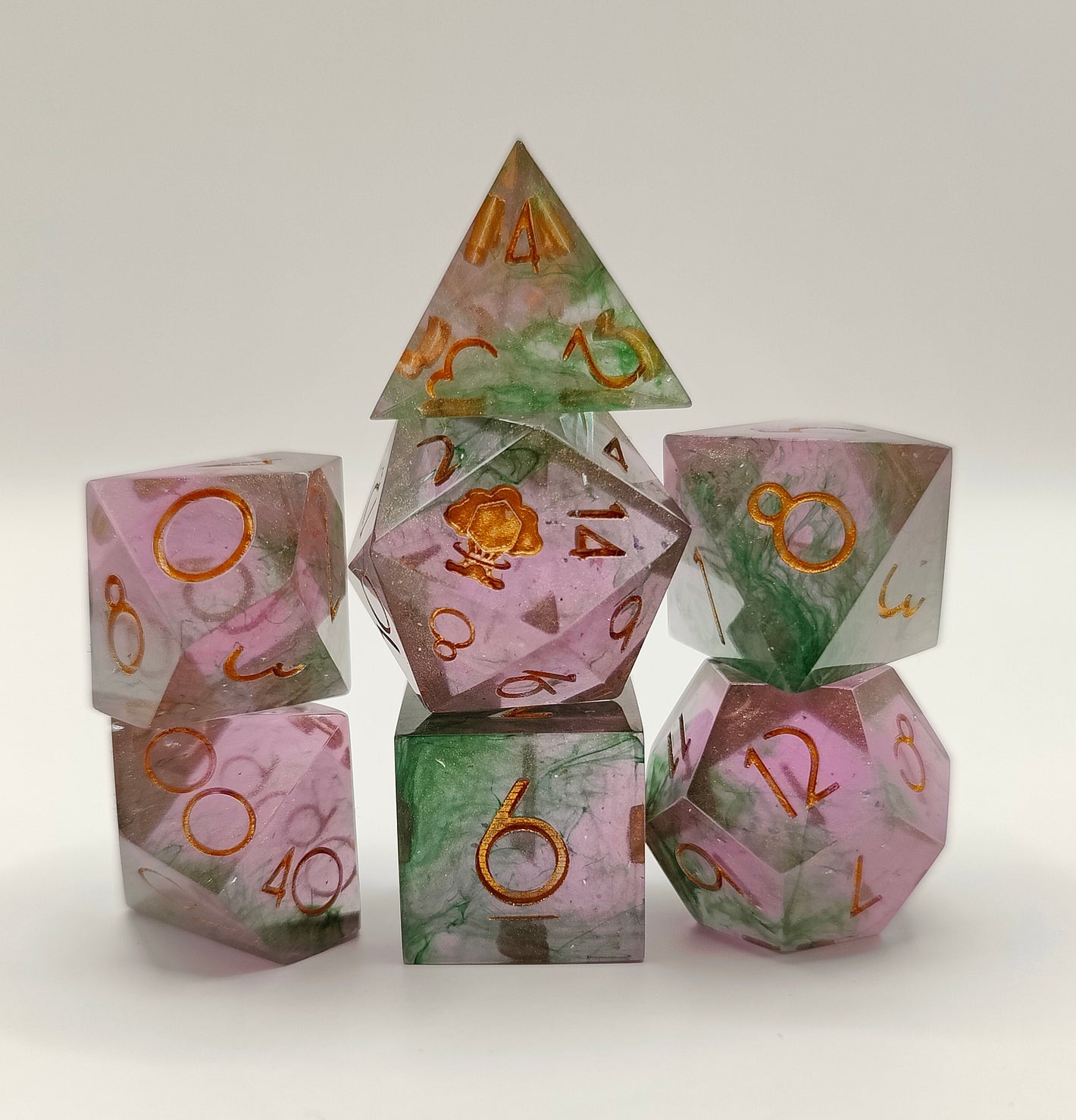 "The dice arrived super fast and they look SO pretty! The edges are super