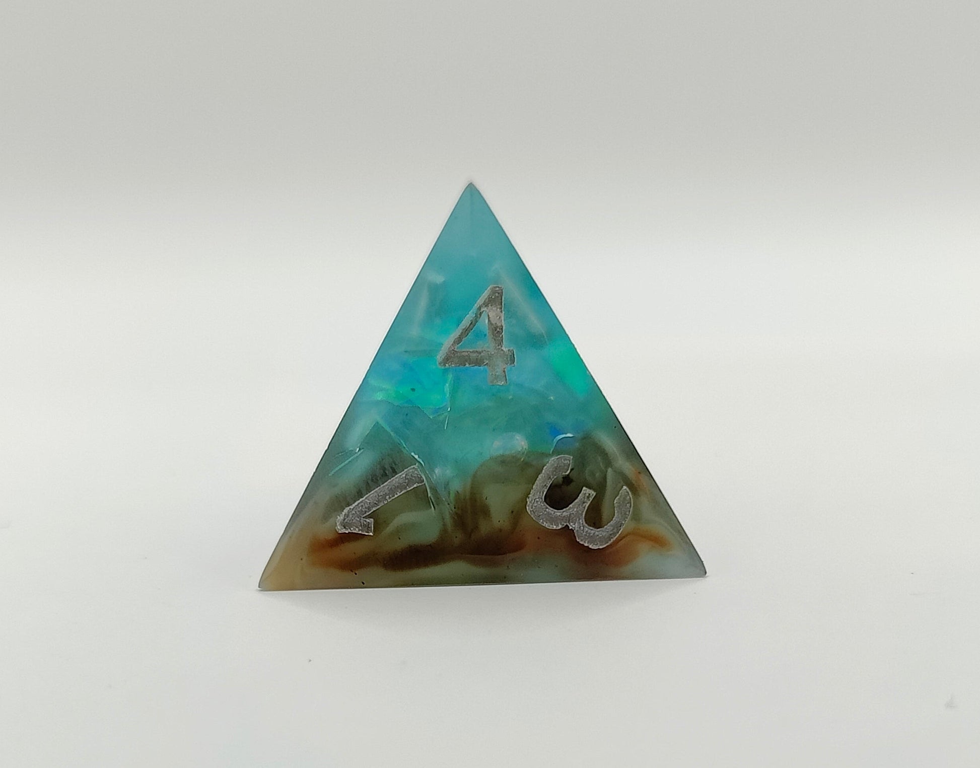 This handmade die was made with resin, alcohol inks and mylar foil. This die was made in a pressure pot, with my own molds, font and logo! This die doesn't have any bubbles, it might have slight sanding marks. Please look at the pictures to see the Quirks this die might have. Feel free to ask me questions!!